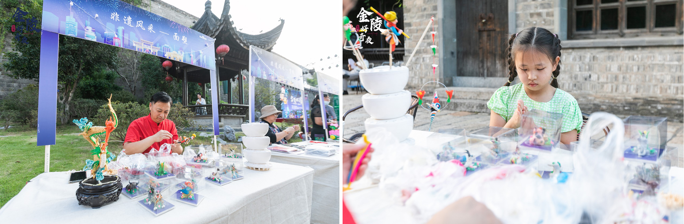 作為六朝古都,南京的非物質文化遺產可謂絢麗多姿,它不僅是中華民族智慧與文明的結晶,更是傳承至今的珍貴文化資源。本次活動邀請到多位非遺傳承人現(xiàn)場展示“面塑”“秦淮燈彩”“中國剪紙”“南京云錦”傳統(tǒng)技藝,為市民朋友生動演繹非遺文化技藝?,F(xiàn)場非遺文化愛好者與他們互動交流,體驗南京非遺文化的風采與魅力。